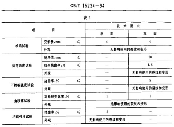 托盤應按第6章規(guī)定依次進行各項試驗,技術要求應符合表2規(guī)定。
