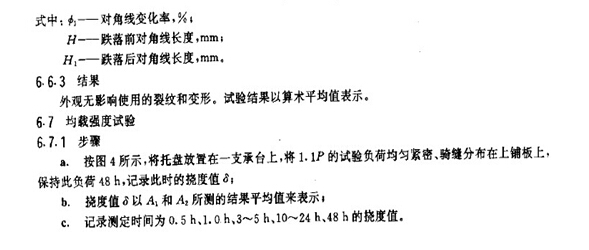 6.3.3 卸載后,外觀應無影響使用的裂紋和變形。試驗結果以算術平均值表示。